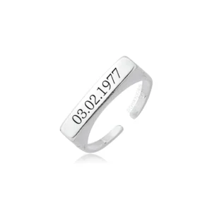 Anel Retângulo Personalizado (Regulável) : Um design sutil, mas moderno, que pode ser gravado com informações importantes, como coordenadas ou uma palavra significativa.