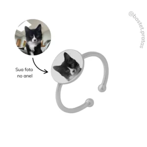Anel Personalizado com nome, foto ou iniciais : Semijoias Banhadas a Prata Bastet