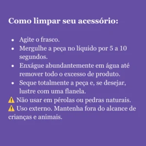 Armazenamento: Guarde suas joias em saquinhos de tecido ou flanela, longe da umidade e de produtos químicos.