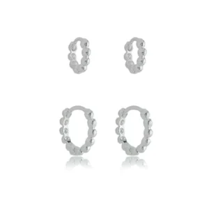 Dupla Argolas Bolinhas Banhada a Prata Bastet