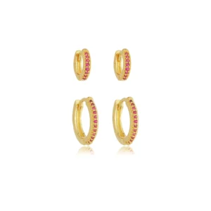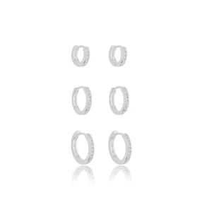 Trio Argolas Cravejadas Banhada a Prata Bastet
