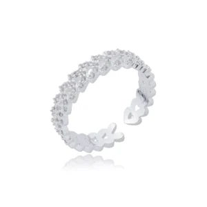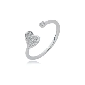 Anel Coração Cravejado e Ponto de Luz (Regulável)|Banhado a Prata