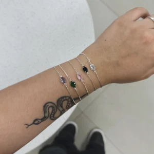 Pulseira Cristal Verde|Banhada a Prata